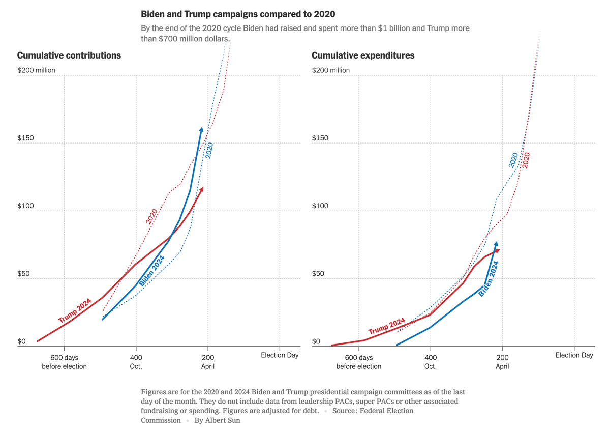 - NYT/Siena民调显示,特朗普被定罪后,拜登的支持率有所上升。受访选民在4月和5月的回答中对特朗普的支持率领先三个百分点,但本周他们对特朗普的支持率仅领先一个百分点。