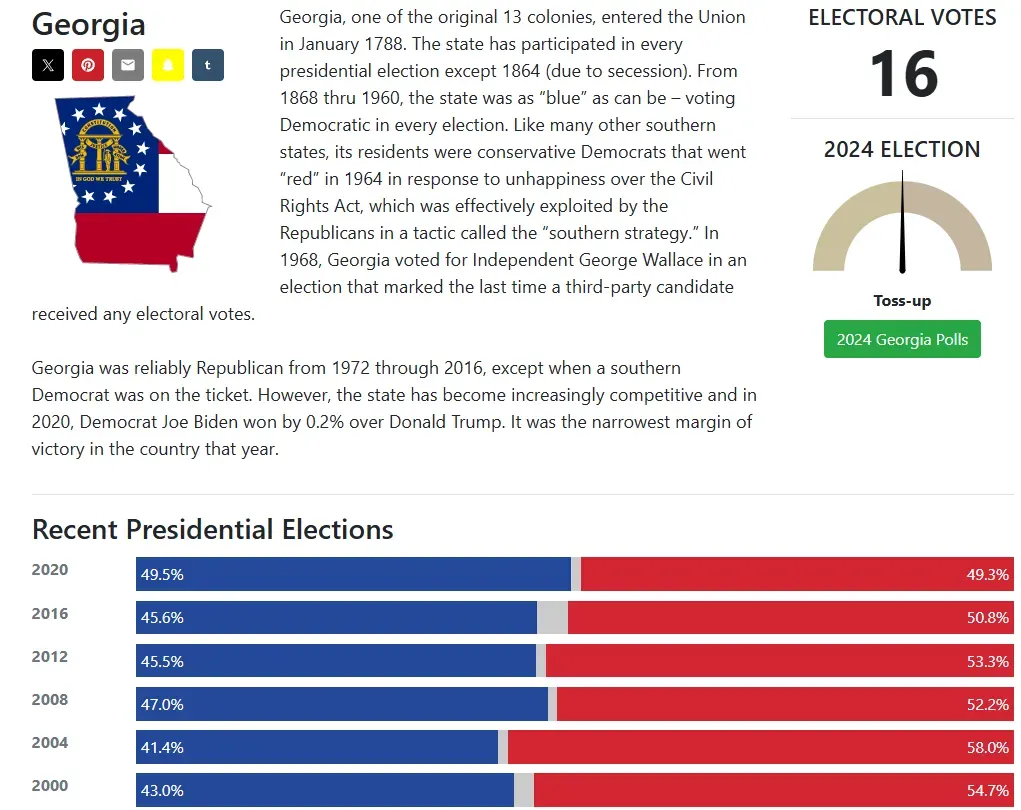2024年美国大选摇摆州巡礼——佐治亚和北卡选情分析