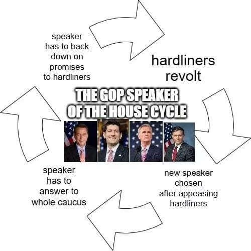 特朗普此时背书他,并不是因为特朗普多信任或者高看他的政治能力,而是怕误了自己的加冕等要事。而事后议长选举中等待时机才投票的七位自由连线议员和诺曼和塞尔夫一同写了一封九人联名信给约翰逊,警告他说他们只是出于对特朗普大统领的忠诚,才选择暂时相信约翰逊,倘若他未来在预算谈判和推动预算协调法案时偏离了保守派的既定路线,肯定会落得一个“如麦卡锡故事”的下场。九人联署警告约翰逊,同时还蕴藏了另一个信息——即刚好达到新规则要求的至少有八位以上议员联署才能启动罢免动议的门槛。