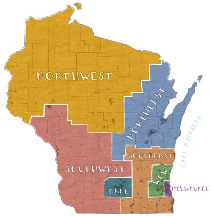 按照2020年的惯例,还是将威斯康星划分为七个部分来进行逐个分析:密尔沃基、密尔沃基城郊/WOW三郡、东南地区、西南地区、戴恩郡/麦迪逊、东北地区、西北地区。